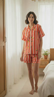 Lemon Sprig & Coral Striped Cotton Braless Nightsuit